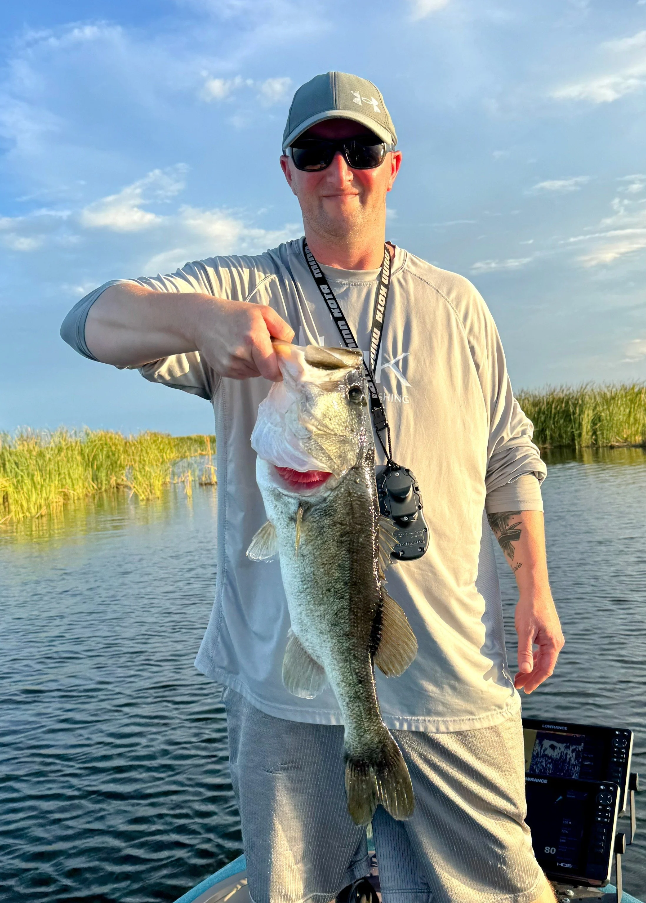 Lake Placid Largemouth Bass 4 hours, 1-person fishing trip $400.00, 2nd person is Free, additional 3rd person is $100.00. Each additional hour is $50.00 up to 8 hours max. We can use artificial baits or Live Shiners. If you opt for using Live Shiners, you will need to cover the cost of the bait. Bait is not included in the price of the trip. It is recommended to use Live Shiners for the best explosive and take down action, but we can still have great days fishing with artificial baits. Depending on conditions we can have around 20 bites a day on artificial baits or up to 20-60 bites a day using Live Shiners. We have had days using live bait where we have caught and landed up to 50 Bass. You never know when you’ll hook into that trophy Largemouth Bass 8+lbs.
